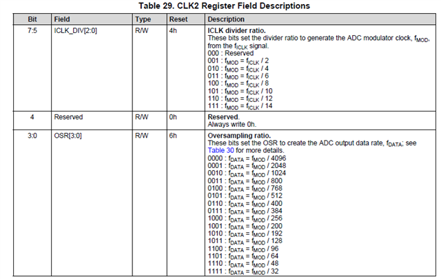 fICLK确定了,或者说SCLK频率确定了,通过配置CLK2寄存器 ADC output data rate也就确定了。