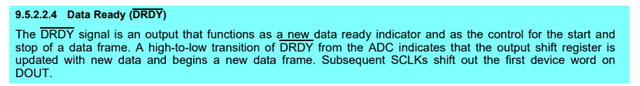 • 按照您的回复和手册的连接方式,是不是表示只有在DRDY拉低的时间内进行通信才是有效的呢?