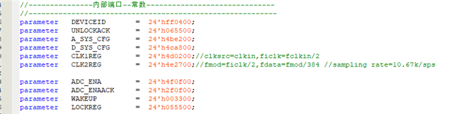 parameter CLK2REG = 24'h4e2700;//fmod=ficlk/2,fdata=fmod/384 //sampling rate=10.67k/sps