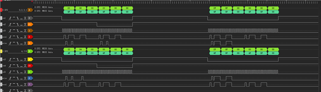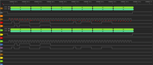 答复:这个是因为逻辑分析仪设置反了MOSI和MISO,因此,2fXX是设备的回复,我发送的是按照截图的程序发送值,按照以下代码顺序发送