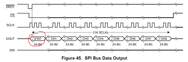 请问ADS1299读出的数据流第一个24bit数STAT每位的意义,谢谢