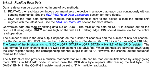 如下截图所示,即1100 + LOFF_STATP + LOFF_STATN + bits[4:7] of the GPIO register