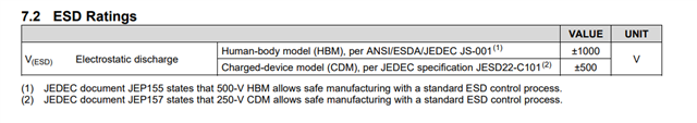 是的,这取决于您设计的产品需要符合什么样的规范/标准,一些医疗设备是需要满足一些ESD规范/标准的。ADS1299满足以下JEDEC 标准: