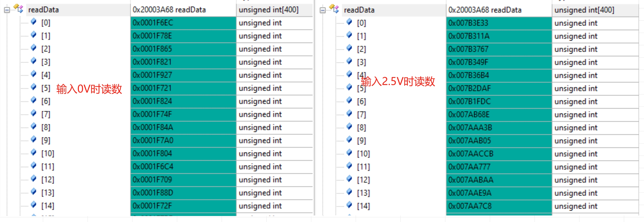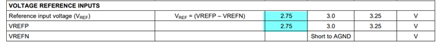 AVDD=5V, DVDD=3.3V, VREF=2.5V