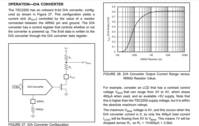 它的输出范围和Arng接的电阻Rang有关,Aout和Rang的曲线参考Figure 28: