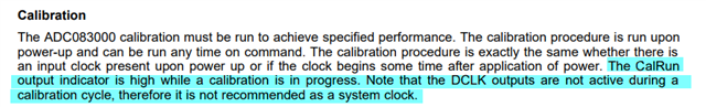 此时您有没有检测calrun管脚的状态?此时是低电平吗?因为低电平表示校准完成。如果在校准过程中,使用内部模拟开关从内部转换器断开模拟输入信号,且SPI接口不处于有效状态(除了写入校准位以启动校准过程外)