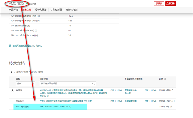 EVM 板用户指南链接也附一下:AMC7836EVM User's Guide (Rev. A)