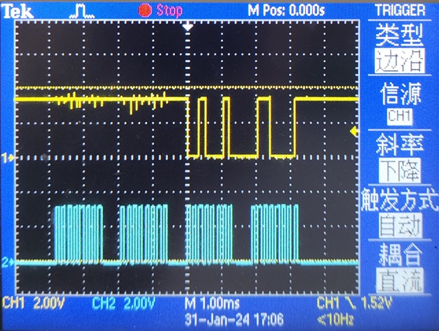 ADS1243写寄存器,SCLK推挽和开漏外部上拉都正常,通过反复配成推挽或开漏测试无影响,只要保证读的时候SCLK配置成推挽,读的数据都是正确的,说明写寄存器和SCLK推挽或开漏外部上拉无关。
