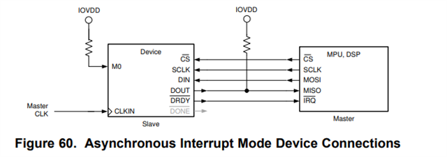 不明白您附的时序图,采用异步中断模式的话是下面接线,发送读取命令的话,应该是Master  输出,返回寄存器值的话,应该是Slave 输出。