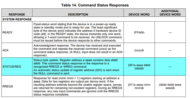 3)NULL 命令的响应不对,发送NULL命令,接收到的应该是0x22dd0000,ddh是寄存器STAT_1 的值。