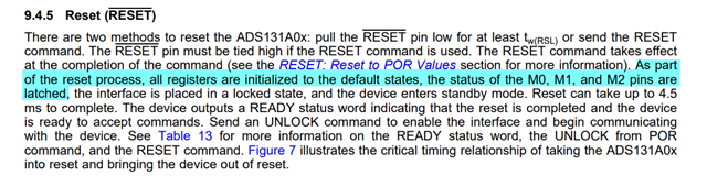 如果这3个管脚是接MCU程序控制,则需要reset 管脚复位一下ADS131: