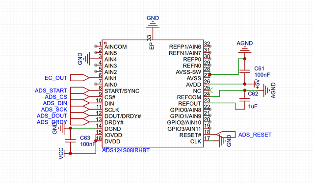 如图,EC_OUT是个单端信号0-5V,目前是将MUXN配到AIN4,MUXP配到AIN1,在PGA=1时测量范围是+-2.5v,ADS124S08是否有寄存器可以将某个引脚配置为VDD/2,实现0-5V的测量范围