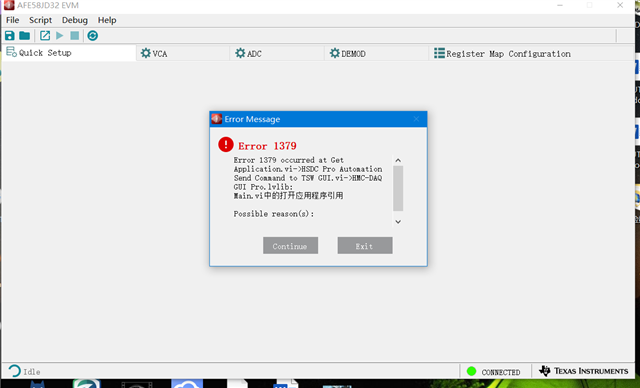 在启动和运行的时候不停的报错,无法通过软件操控AFE58JD32的板子
