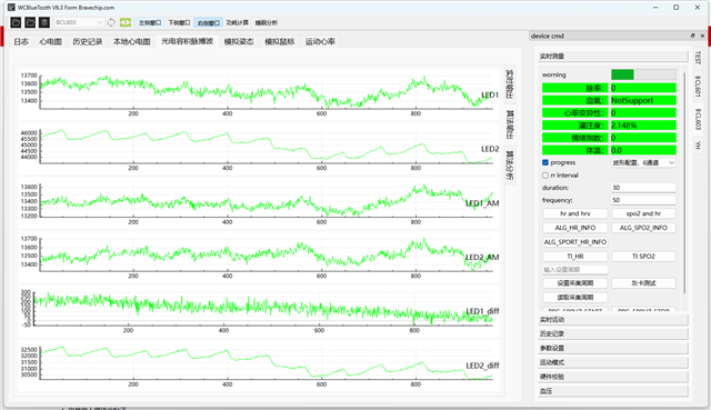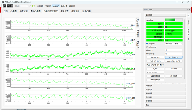 可以看出红外正常,但是绿色的采集的波形没有效果。但是实际绿光是亮起来的。