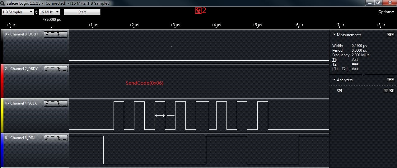 图2为执行SendCode(0x06)//发送复位操作码 ,SCLK和DIN引脚的电平变换,感觉没问题