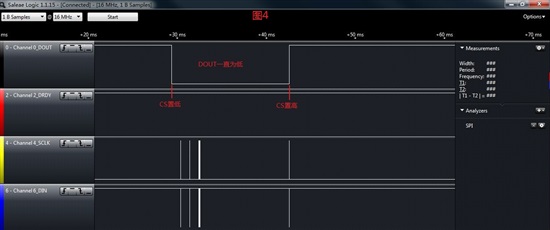 图4为程序卡在while((P1IN&ADS1294_DRDY)!=0);之前的DOUT情况
