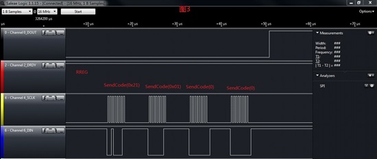 图3为RREG指令部分,发送没问题,但是ads1294DOUT依然没变换