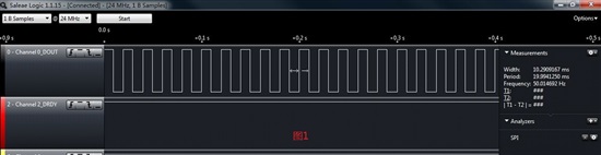 图1为上电时DOUT输出,这个测试模式,在开始就输出50Hz的方波,请问为什么,方波不是应该在输入端么?