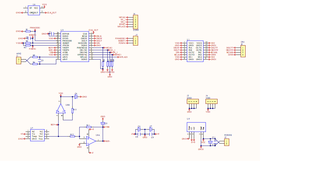 我现在开发一个单通道数据采集系统,想先把ADS1281这部分电路调通,但是现在布板焊接上电试验过程中,没有发现有数据转换,考虑是ADS1281没有工作,附件中有现在用的电路原理图,麻烦哪位高手帮我看下问题出在哪里,谢谢!