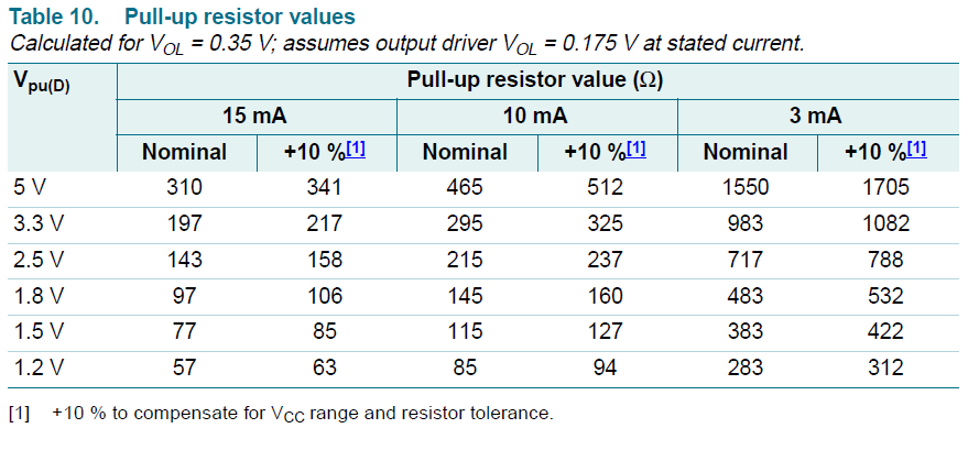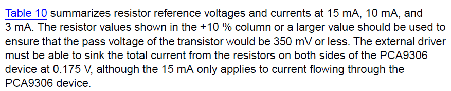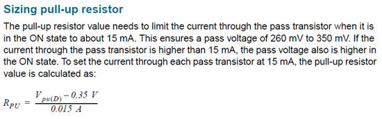 我的疑问是,我在TI官网上看到的关于PCA9306使用的示例原理图中看到的上拉电阻多是2.2K左右,甚至还有4.7K的,算下来的电流远远低于1mA,我知道了这个器件的最高工作电流为15mA,那它是否有最低工作电流?上拉10K的电阻也没关系吗?