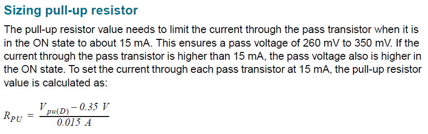 这里计算出来的是上拉电阻的最小值,电阻太大的话会影响上升时间,所以2.2K或者4.7K都是经验值。