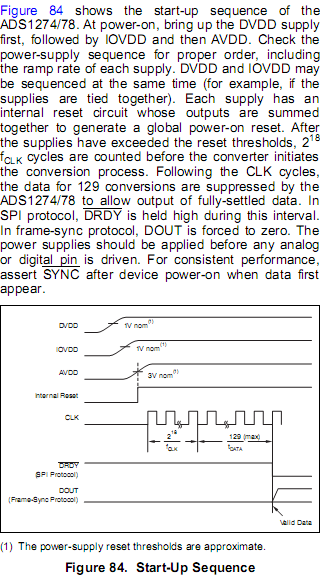 2. ADS1274是否存在手册中没有的自锁情况?(已排除片子进入全通道power-down的超低功耗状态)