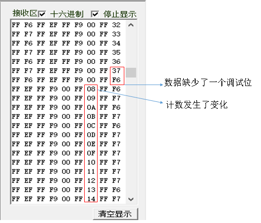 调试的是ADS1194,每个/DRDY 接收转换数据并通过串口发送到串口助手中,先调试的CH1~CH4 通道,使用的是内部的Test_signal,增加了一位调试位,即每进一次/DRDY,调试位自加1.