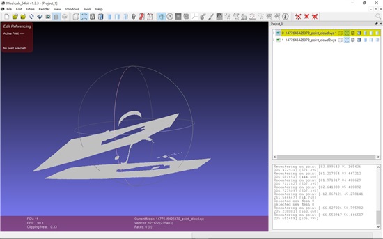 我利用兩組校正後extrinsic type data 將兩張雲點資料疊合,