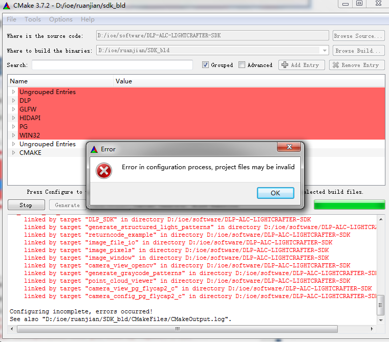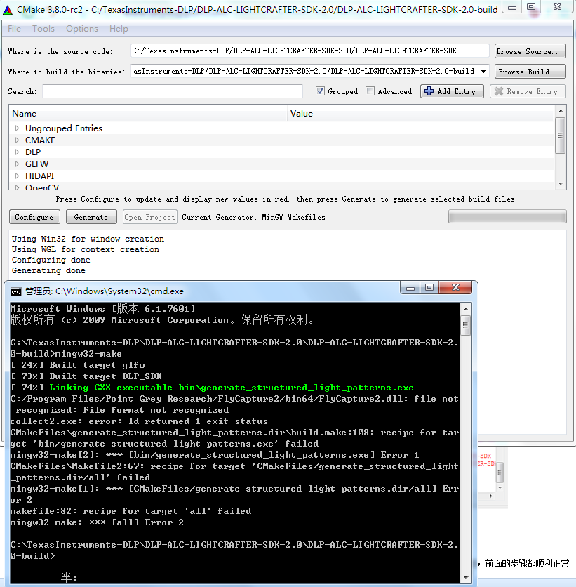 新手,最近尝试搭建dlp6500开发环境,完全按照技术文档dlpu042的步骤进行,做到第八步“Building the DLP ALC SDK ”时出现问题。