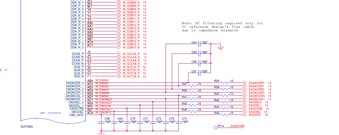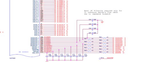 1、在TI的参考设计中,称由于软排线的阻抗不匹配,在DLPC900的LVDS接口上需要一个RC网络。这个RC网络在我们自己的设计中是否可以省去?有没有软排线的选型推荐?