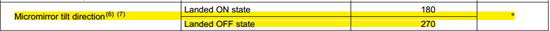 (7) Micromirror tilt direction is measured as in a typical polar coordinate system: measuring counter-clockwise from a 0° reference which is aligned with the +X Cartesian axis.