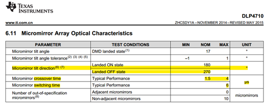direction. A binary value of 0 results in a micromirror landing in the OFF State direction.