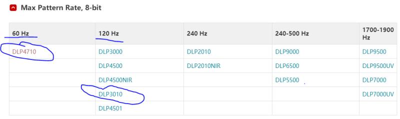 之前想购买DLP4710,因为它的尺寸,分辨率,刷新率(早期8位图像刷新率240Hz),是比较符合要求的,我们的整个系统的搭建都是围绕它进行的,但前几天,突然看到官网上的DLP4710的8位图像刷新率降到60Hz了, 想知道是怎么回事呀?