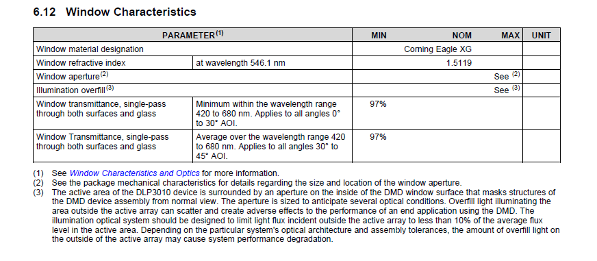 请问设计光机时,dmd3010微镜前保护玻璃的厚度是多少?保护玻璃折射率多少?保护玻璃到微镜的距离是多少?