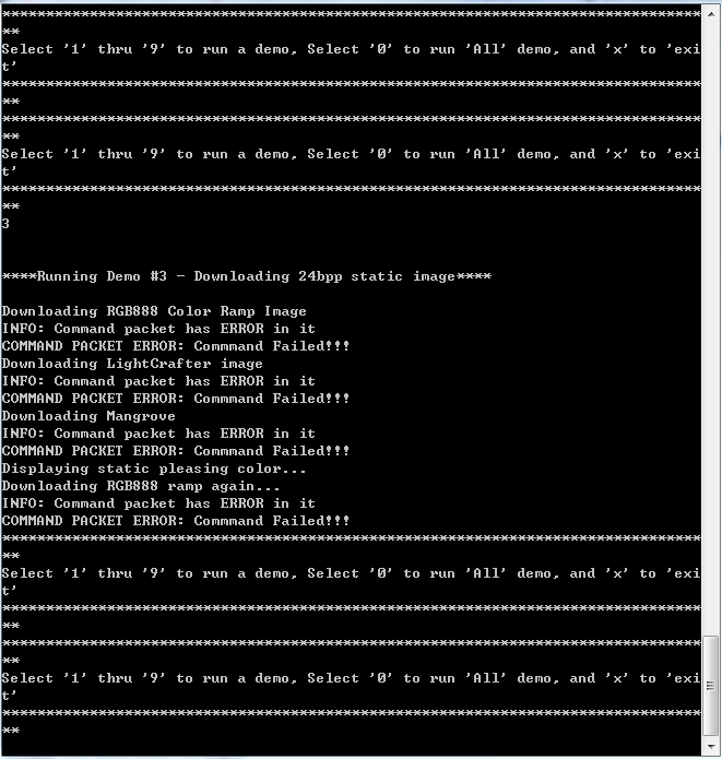 用USB连接PC和DLP进行demo演示,不能读入静态.bmp图片,结果如下图。 请问如何解决