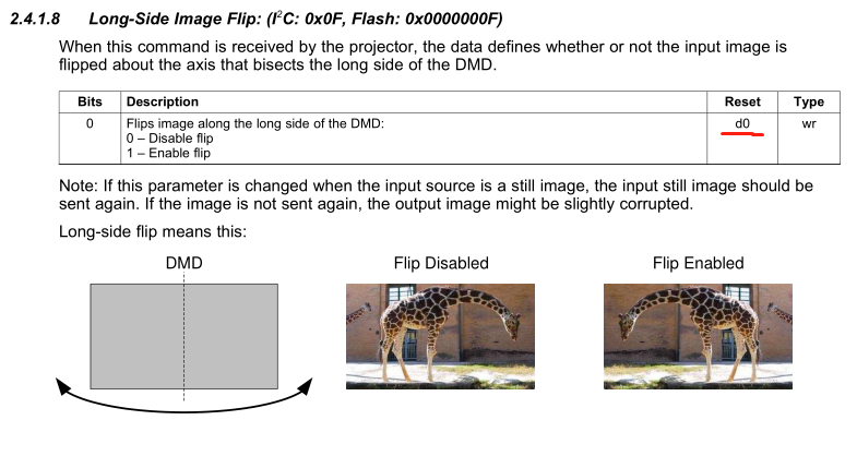 截图中的 flip 这一步操作无论是否执行,或者DLP2000EVM是否重启都没有变化。这两个测试图片的显示没有发生改变。所以现在的主要疑问是,这个画面翻转的效果是否只能在视频流存在的情况下才能生效?对静态显示的内容,如启动画面或者色条色块测试等等无效?