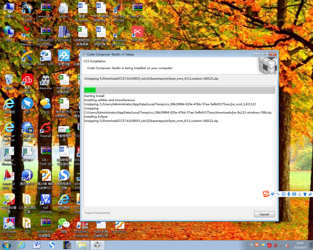 CCS安装时卡死,刚发帖时图上传错了,这是重新发的贴。卡在这里1个小时了,任务管理器显示是正在运行状态。