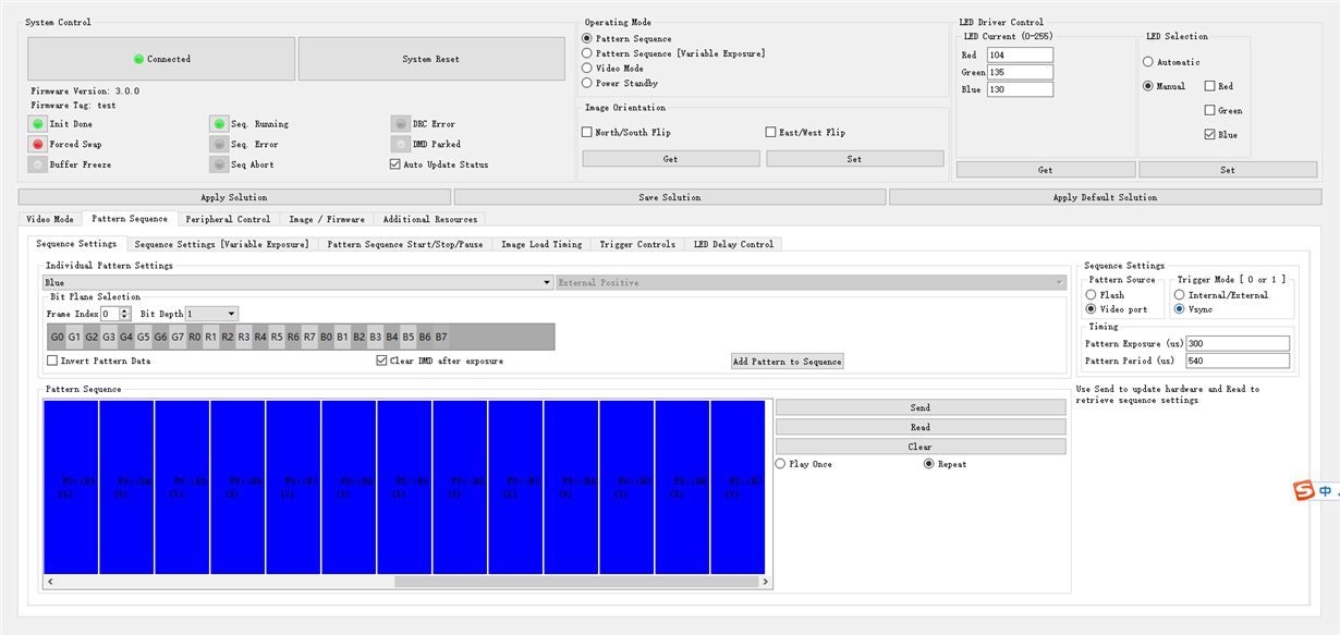 通道2 与我设置相符 Pattern Exposure 300us Pattern Period 540us