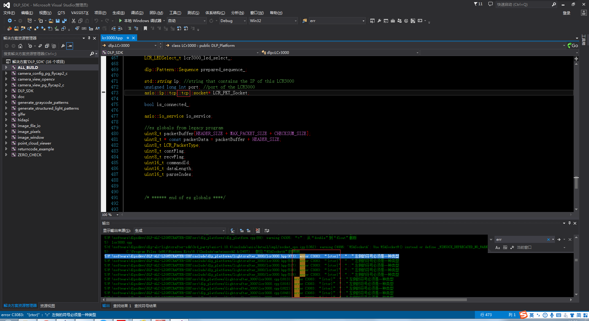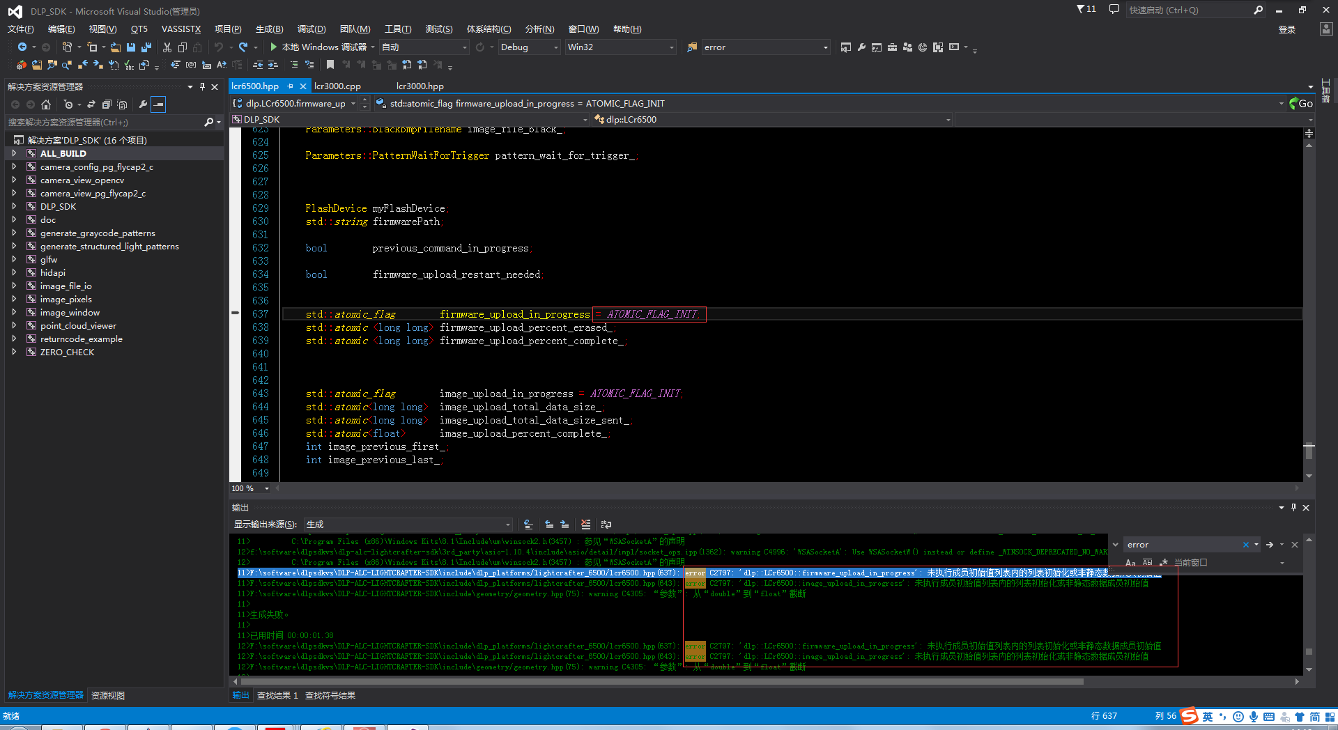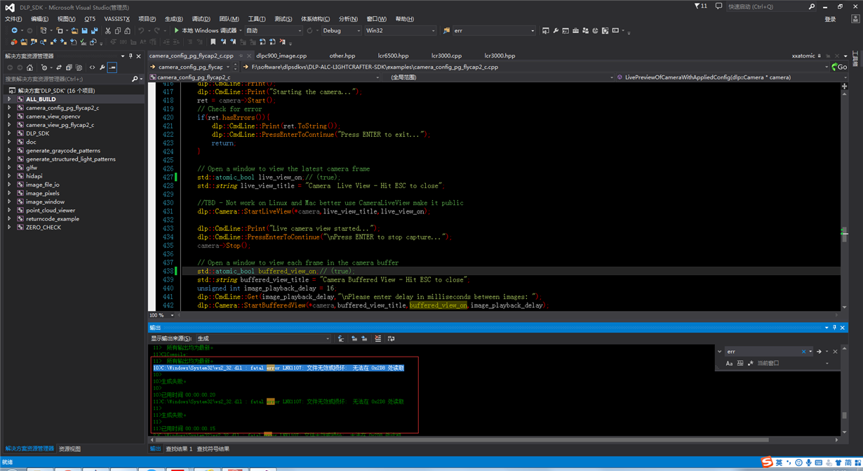 如图 ,cmake DLPsdk generate成功后,按照文档在build的目录下cmd然后mingw32-make时发生的错误,请问是什么原因,是不是因为我用flycapture64位的缘故,有遇到过的么?谢谢。