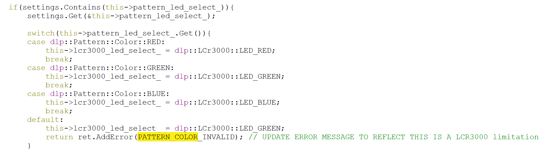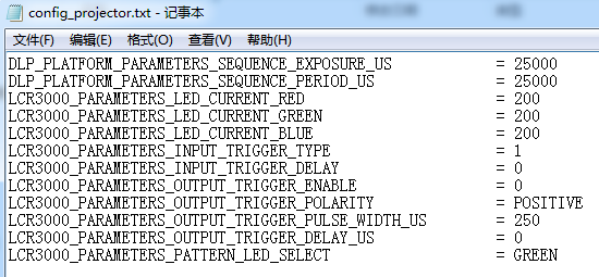 我修改了config_projector.txt配置文件中的LCR3000_PARAMETERS_PATTERN_LED_SELECT = GREEN