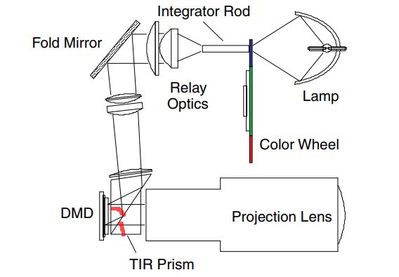 camera的摆放角度是否需要跟随微镜偏转旋转12°呢?如果camera平行于分束镜表面,那么微镜偏转12°时反射的像理论上应该投射在一个偏转12°的平面上,这样的话成像会有误差,如果camara偏转12°摆放,会增加调试难度而且camera中看到的DMD芯片会存在变形。