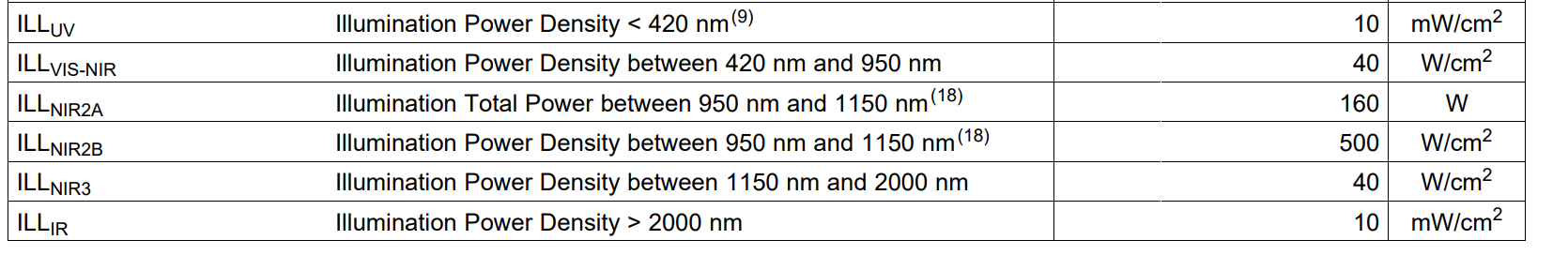 首先并没有这样一个损伤阈值,DLP的损伤通常是一个渐进的过程,并不是说超过了某一个使用条件就会突然损坏,而且其寿命取决于非常多的因素,光功率,温度,波长,Duty cycle等等,很难有一个模型能够确定这样一个阈值。