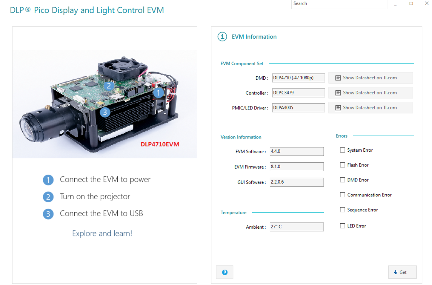 运行光机进行操作,evm software :4.4.0 evm firmware:8.1.0 GUI software 2.2.0.6