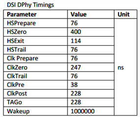時序詳細是參照(Example DSI Configuration and Timings的設定(page8),進行設定有些不清楚代表的意思),