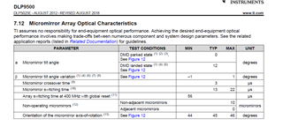 根据DMD规格书,switching time 是13us, ( mirror settling time + reset time(crossover time)