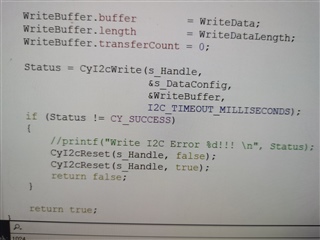 • 我是使用qt,关于I2C读写是调用TI sample的代码,但是不知道为什么不发送停止位,之前使用cy7 x86库的时候,在读写过程中地址一直错误,后面换成x64的库,发现不发送停止位