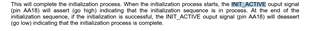 手册上描述的是在系统复位时,INIT_ACTIVE信号会置位(拉高),然后又描述复位结束后会立即执行初始化流程,此时INIT_ACTIVE也是置位(拉高)。那么,也就是在复位开始到初始化完成这段时间(大约220ms),此信号一直是高电平,持续到初始化完成才拉低吗?期待回复!