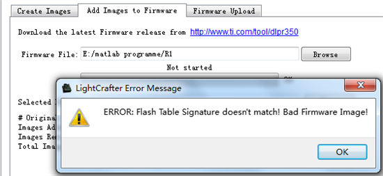 应用GUI的creat创建好图像后,在Add image to firmware按钮browse图像时出像错误“ERROR:Flash Table Signature doesn't match!Bad Firmware Image!”,请高手帮忙解释一下,谢谢!