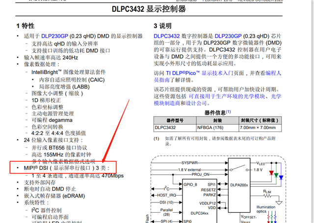 DLP3432 支持MIPI DSI 输入吗?看规格书特性介绍里面有说支持,但是在后面的Pin description 又说是LVDS信号?所以输入信号到底支持那种呢?
