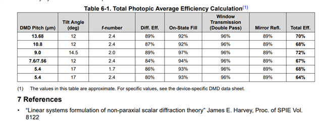 请问DMD的反射效率是多少? DMD反射的光通量/入射到DMD有效面积上的光通量